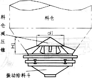 慣性振動給料斗在設(shè)計計算中已考慮了一定的倉壓,但建議在料倉內(nèi)物料高度大于2m時,在料倉內(nèi)安裝料倉減壓錐,以確保振動給料斗更穩(wěn)定地工作,特別是確保其給料精度更趨準確。料倉減壓錐應(yīng)焊接在料倉內(nèi),并保持平穩(wěn)。料倉減壓錐安裝圖,安裝尺寸如下: