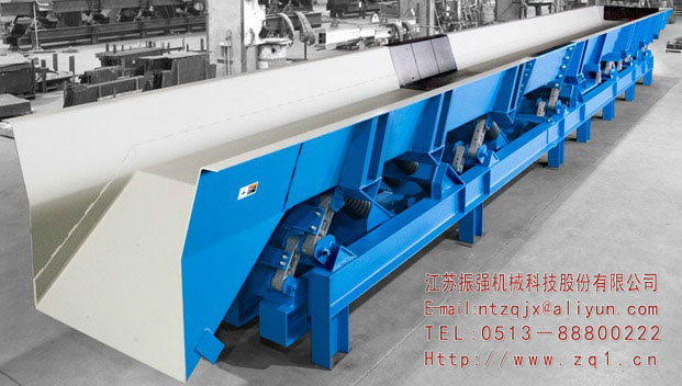振動輸送機(jī)是一種無牽引構(gòu)件的連續(xù)輸送機(jī)械。它是利用機(jī)械共振原理來輸送物料的。振動輸送機(jī)主要由承載構(gòu)件、彈性元件及激振器等組成。激振器足振動輸送機(jī)的驅(qū)動機(jī)構(gòu)動力源,用以產(chǎn)生激振力,使承載槽產(chǎn)生持續(xù)的振動。激振力的大小直接影響著承載的振幅,其交變頻率即為輸送機(jī)的工作頻率。承載體為槽形或管形振動料槽,在振動過程中,將能量傳給物料,使之沿輸送方向作連續(xù)拋擲運(yùn)動。承載體為參振質(zhì)體,需具有足夠的剛度和強(qiáng)度。減振支承裝置既是整機(jī)的支承裝置,又作減振用。